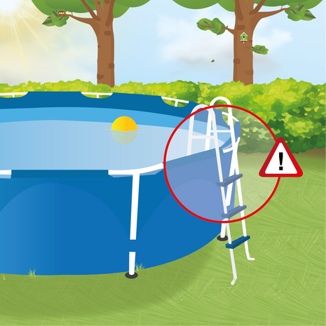 2. Die Poolleiter vor dem Schließen des SunnyTent herausnehmen, um unbeabsichtigtes Einklemmen oder Schäden zu verhindern.