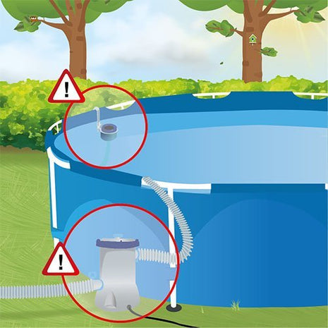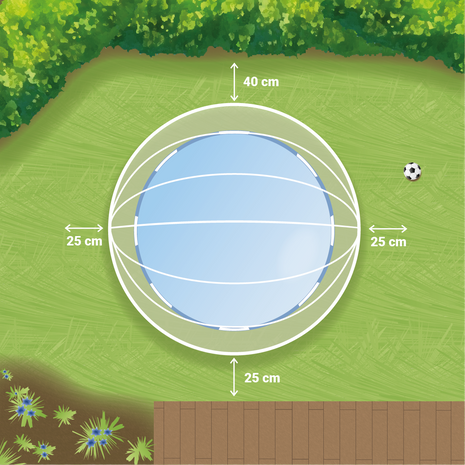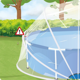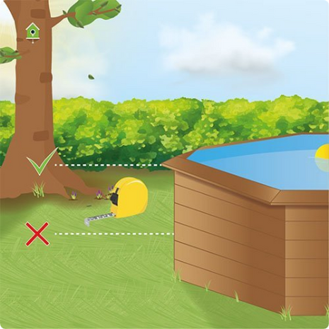 1. Lassen Sie genügend Abstand, damit das SunnyTent nicht den Poolrahmen berührt. Dadurch könnten Verschleißerscheinungen entstehen.