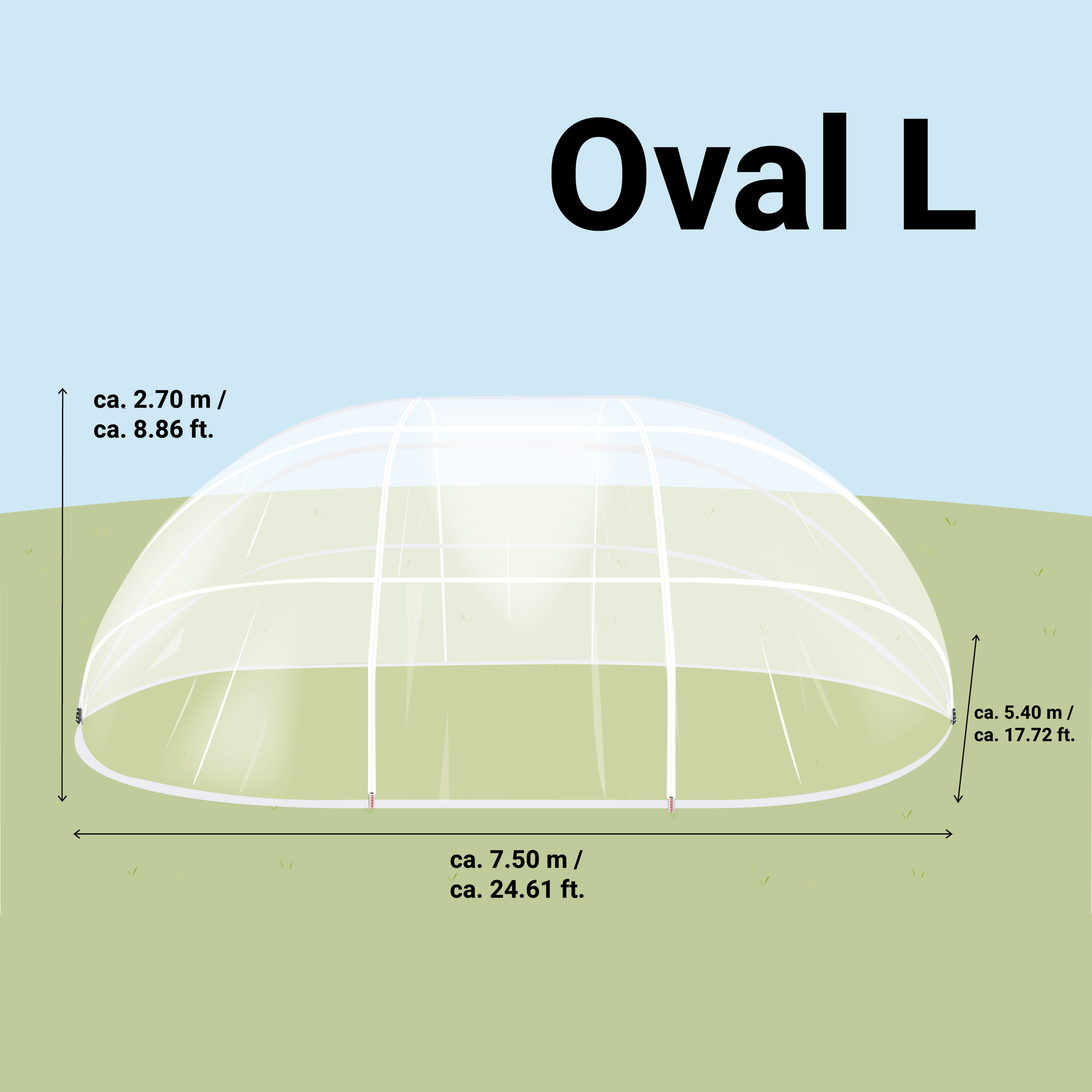 SunnyTent Dôme Piscine Oval taille L 7.50×5.40m